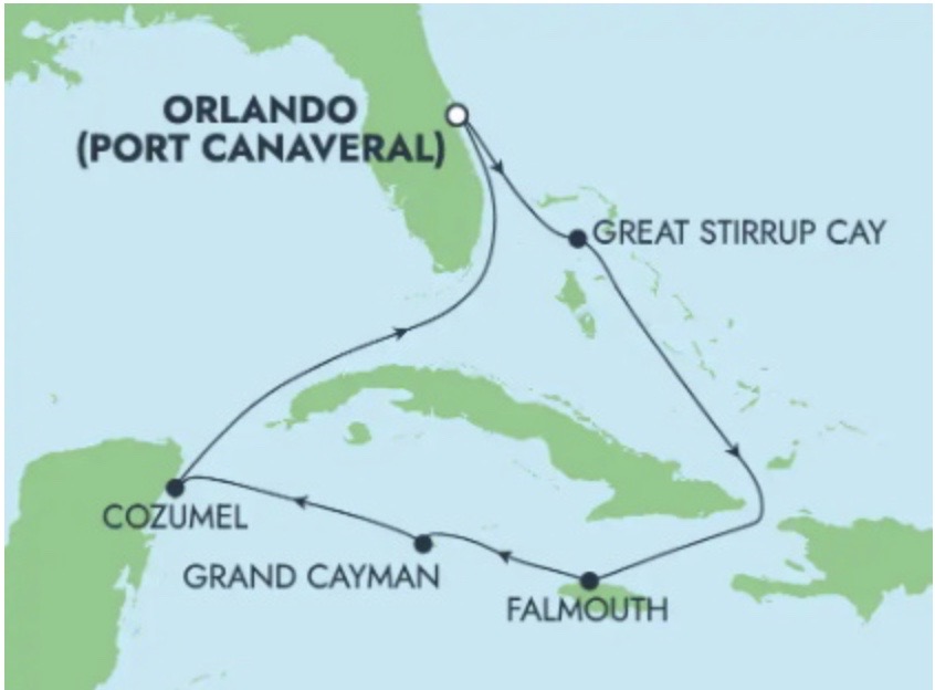 Une superbe croisière au départ de Port Canaveral (Orlando) pour aller visiter l'Ile Privée Great Stirrup Cay. Ensuite, aller profiter des plages de Falmouth et Grand Cayman pour terminer votre périple à Cozumel paradis de la plongée.